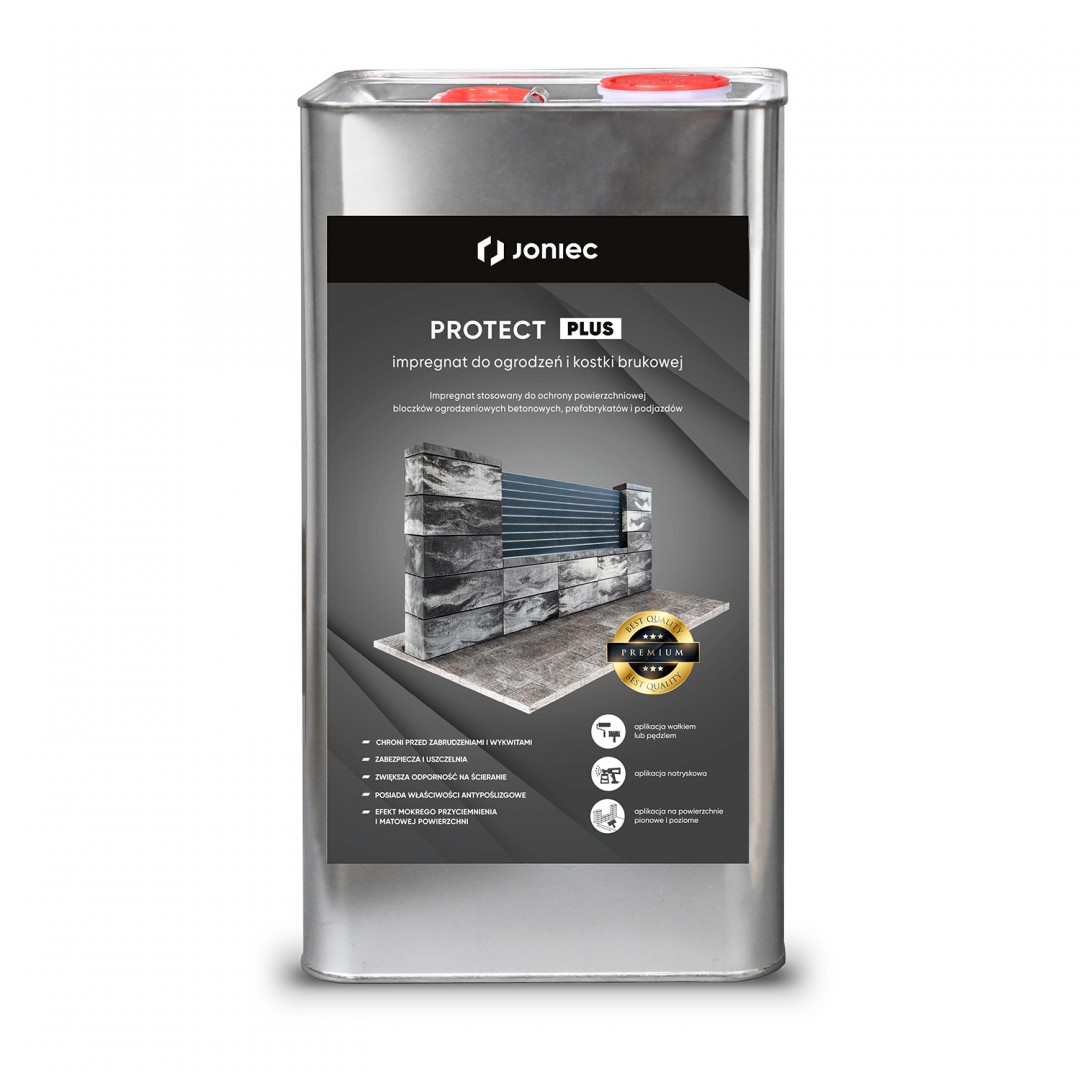 PROTECT PLUS PREMIUM to rozpuszczalnikowy impregnat głęboko wnikający w strukturę materiału tworzący szeroką warstwę ochronną nie tylko na powierzchni bloczków, ale również tuż pod powierzchnią. Pozostawia efekt mocnego matowego wzmocnienia koloru szczególnie na wielokolorowych materiałach, zapewnia ochronę przed niekorzystnym działaniem wody, ogranicza jej wnikanie w mikropęknięcia i pory, redukuje skłonność do zabrudzeń, jest odporny na ścieranie - może stanowić skuteczną ochronę kostki brukowej i płyt tarasowych.